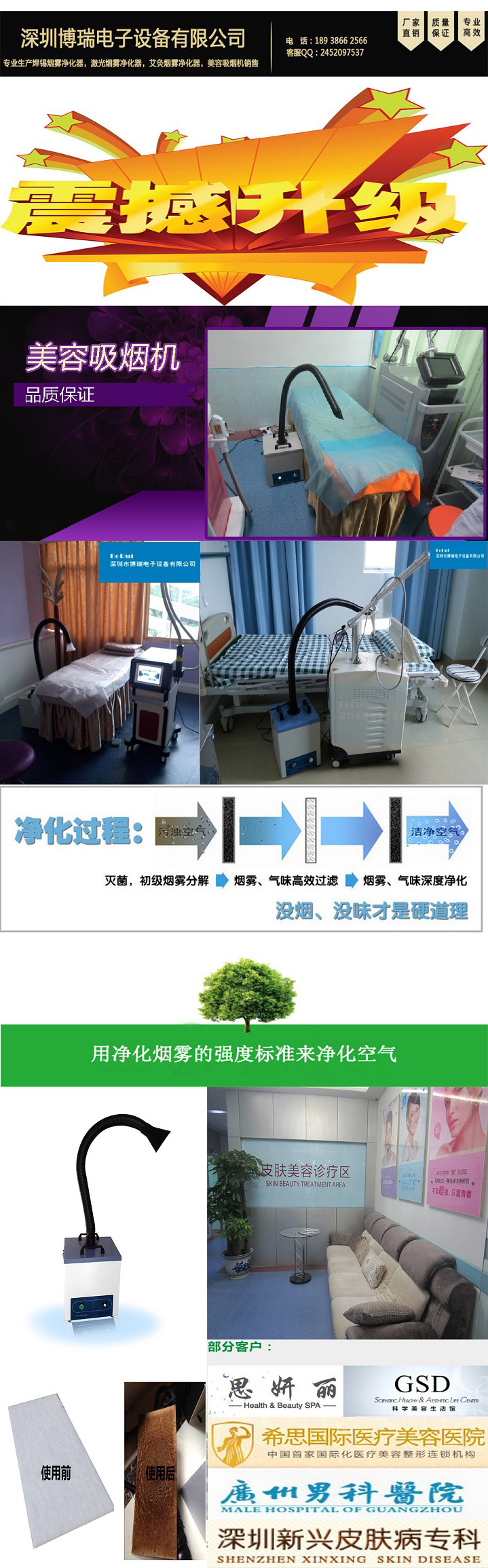 医疗保健类烟雾净化:包括化学实验室、激光整形美容切割人体组织、皮肤科等产生的烟雾异味净化。