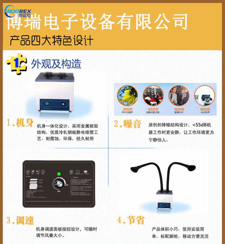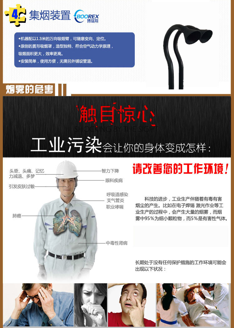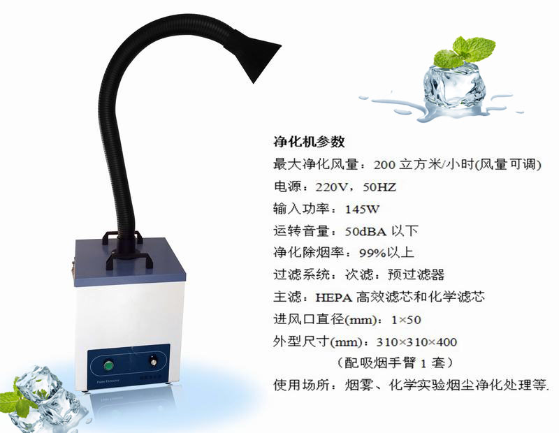 ◆机器配以万向吸烟臂,可随意变向、定位(长度可根据客户要求定制)。端部装以新型集烟罩,造型独特,吸烟效率更高。